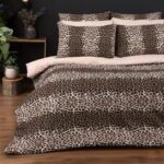 Çift Kişilik Nevresim Takımı Lastikli Çarşaflı Leopar Bej Kombinl