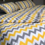 More Home Tek Kişilik Lastikli Çarşaf Nevresim Takımı zikzaklı Sarı beyaz Antrazit