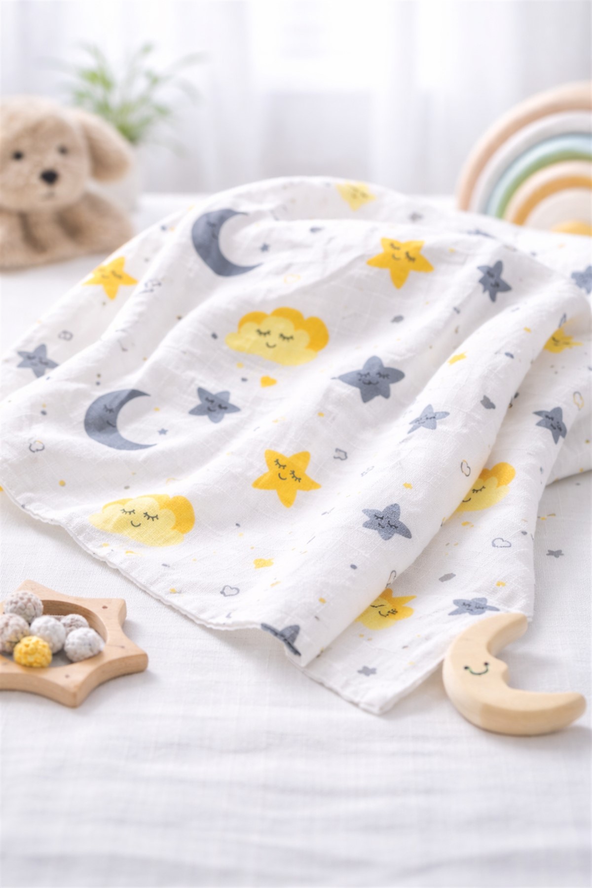 Çocuklar İçin Müslin Kumaş Örtü : Rahatlık ve Zarafet Bir Arada Ay&Yıldızlı