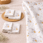 16 Eylül 2025More Home Bebek Müslin Bez Battaniye Set 6 Parça Havuç Yiyen Tavşan Gri Kırmızı