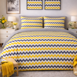More Home Lastikli Çarşaf Çift Kişilik Nevresim Takımı Zikzaklı sarı beyaz Gri