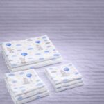 More Home % 100 Pamuk Müslin Örtü, Bebek Battaniyesi 5 Parça Set Tavşan Mavi Balonlu Gri