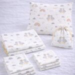 More Home % 100 Pamuk Müslin Örtü, Bebek Battaniyesi 7 Parça Set Gökkuşağı Ördekli Gri