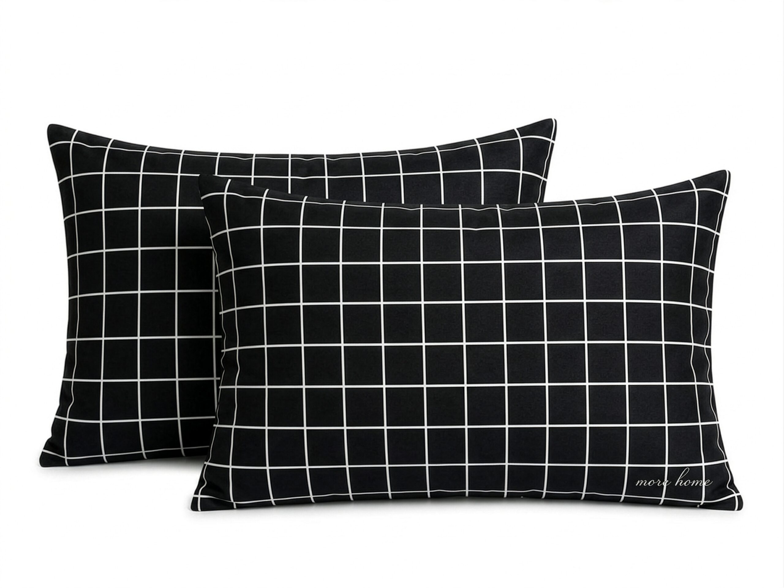 More Home Çift Kişilik Lastikli Çarşaf Seti + Yastık Kılıfı Kareli Siyah Beyaz