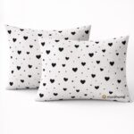 More HomePamuklu Yastık Kılıfı (2 Adet) 50 x 70 cm Kalp Desenli Beyaz Siyah