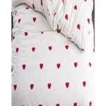 More Home Çift Kişilik Nevresim Seti + Yastık Kılıfı Kalp Desenli Beyaz Kırmızı