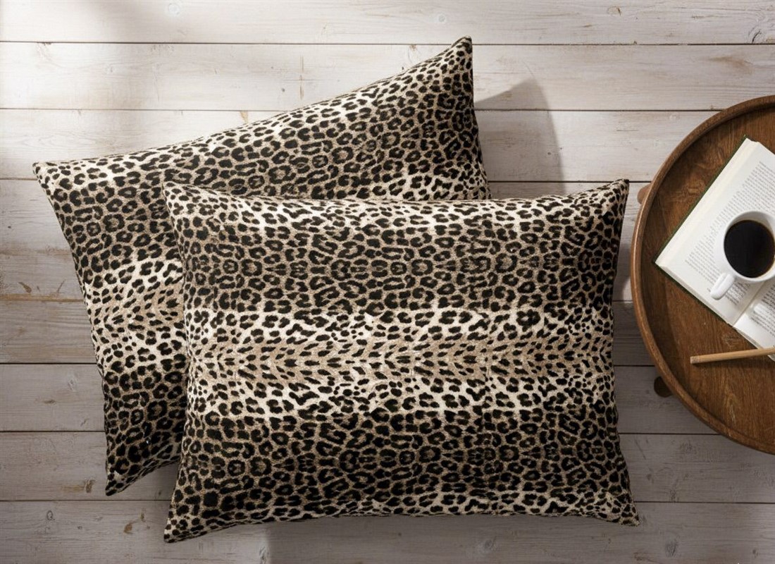 More Home Leopar Desenli Pamuklu Kumaştan Kapaklı Yastık Kılıfı (2 Adet) 50 x 70 cm