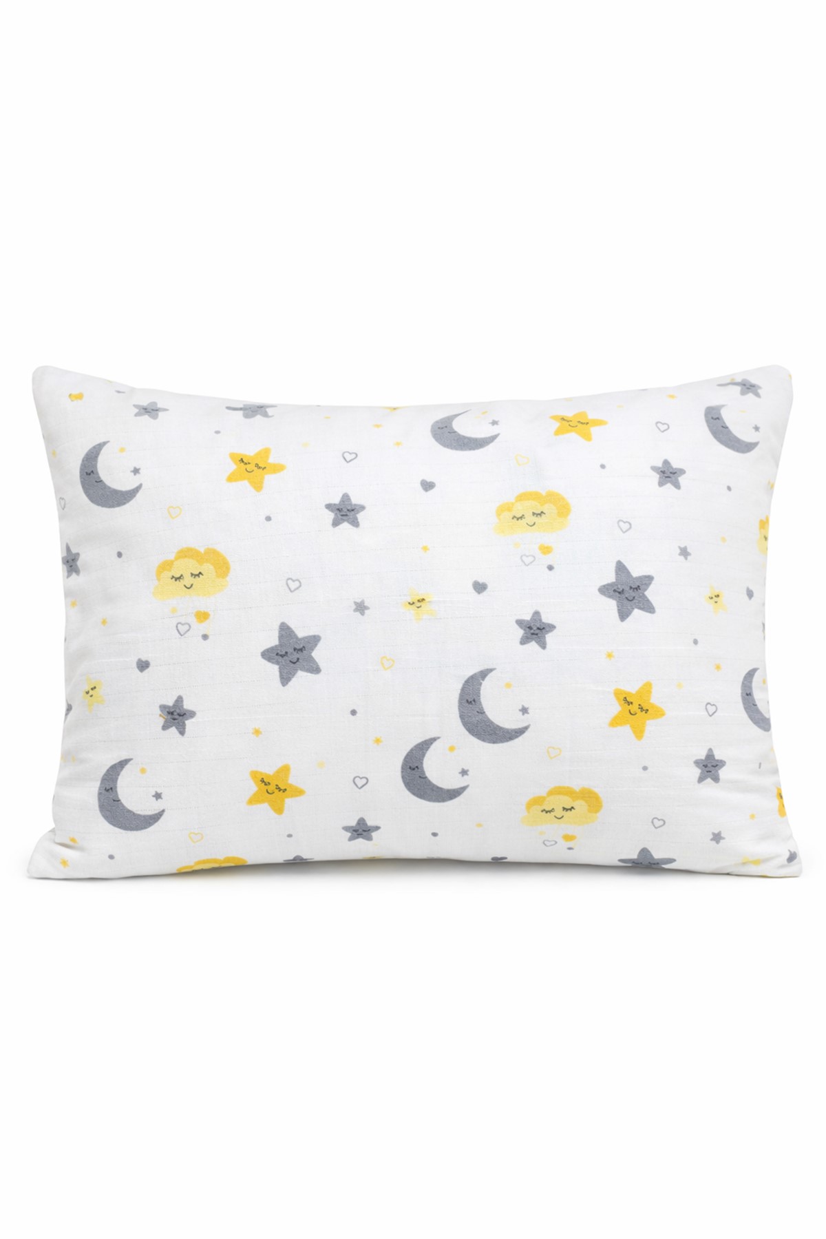28 Ocak 2025More Home Müslin Bebek yastık kılıfı %100 pamuklu yıldızlı aylı 35×45 Gri Sarı