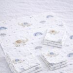 More Home % 100 Pamuk Müslin Örtü, Bebek Battaniyesi 5 Parça Set Filli Gökkuşağı Beyaz Mavi