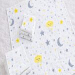 More Home % 100 Pamuk Müslin Örtü, Bebek Battaniyesi 5 Parça Set Ay Yıldızlı Gri Sarı