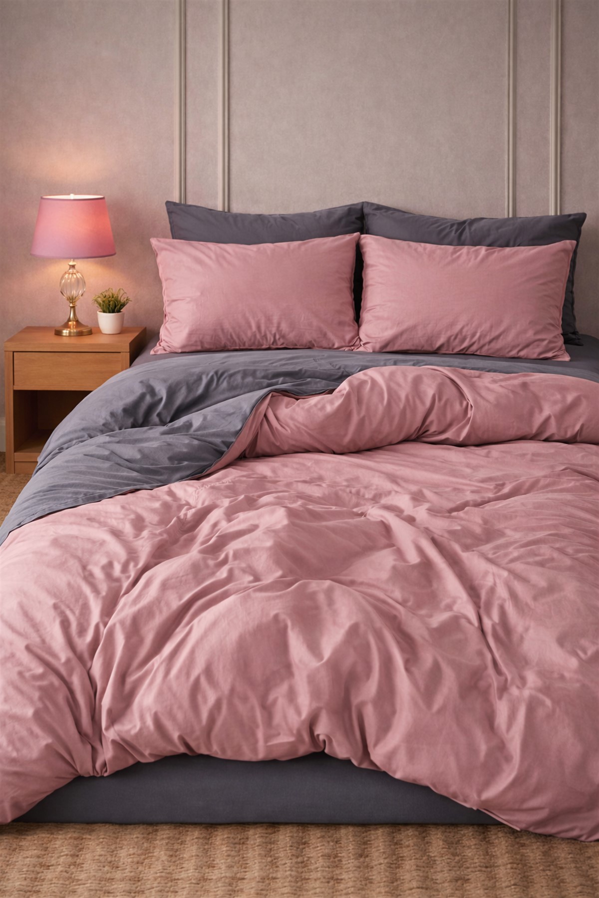 More Home Tek Kişilik Pamuklu Nevresim Seti Anrazit Gülkurusu KOMBİN